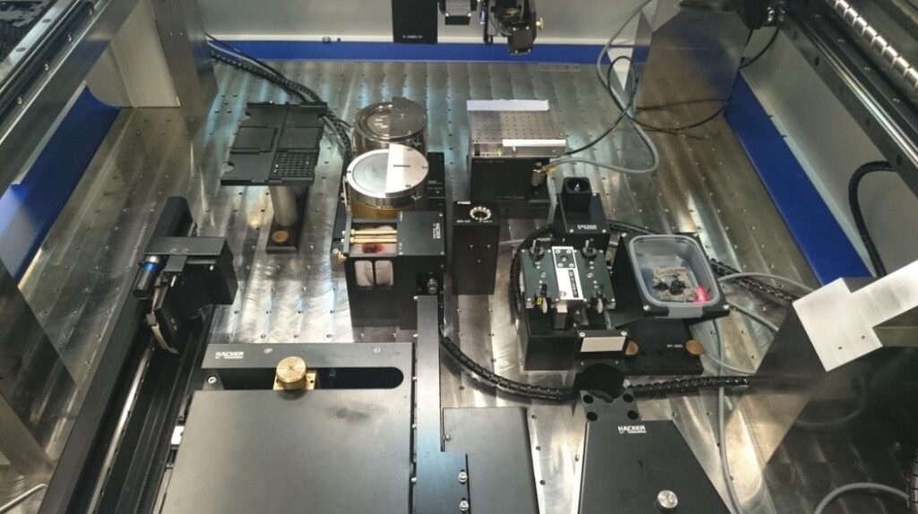 Die Substratzuführung und -bereitstellung wird beispielsweise mittels Boat und einem Carrier auf einem Vakuum Support realisiert. Vor dem eigentlichen Fügeprozess erfolgt eine Inspektion der einzelnen Positionen auf dem Substrat, welche bestückt werden sollen. Diese Positionen wurden anschließend als Referenzen für die Bestückung genutzt.
